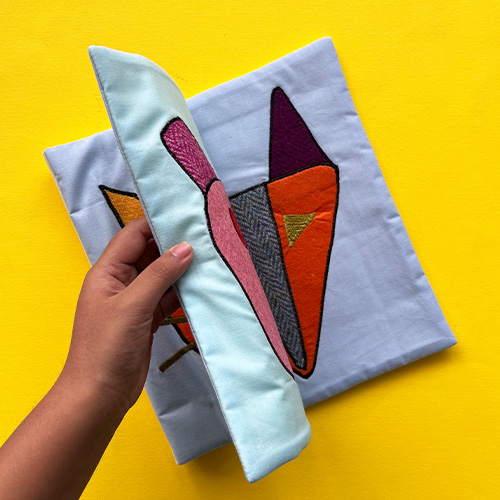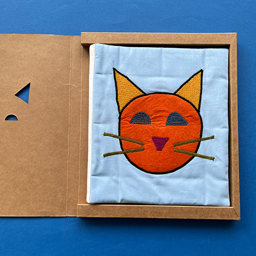 This cloth book for babies and toddlers has been created entirely by hand. Made using scraps of safe, washable fabric – tweed, cotton and felt – it features four adorable images, of a cat, bear, fox and rabbit. The book can be used in multiple ways, as a book, a toy and a spread!