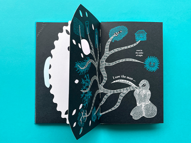 Ramsingh Urveti, Jonathan Yamakami A well-known folk poem from 17th century England, I Saw a Peacock with a Fiery Tail is a form of trick verse. The poem at first seems nonsensical, but given a break in the middle of each line, its meaning begins to unravel. In this pioneering visual exploration of the original text, Gond tribal artist Ramsingh Urveti and book designer Jonathan Yamakami use art and design in the service of language. Working together, revealing and concealing, they brilliantly mirror the shifting ways in which poetry creates meaning.