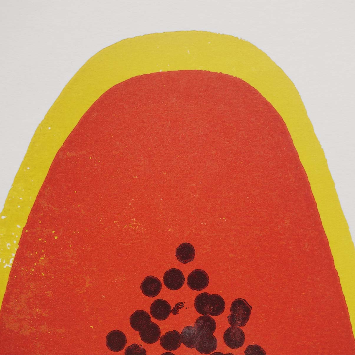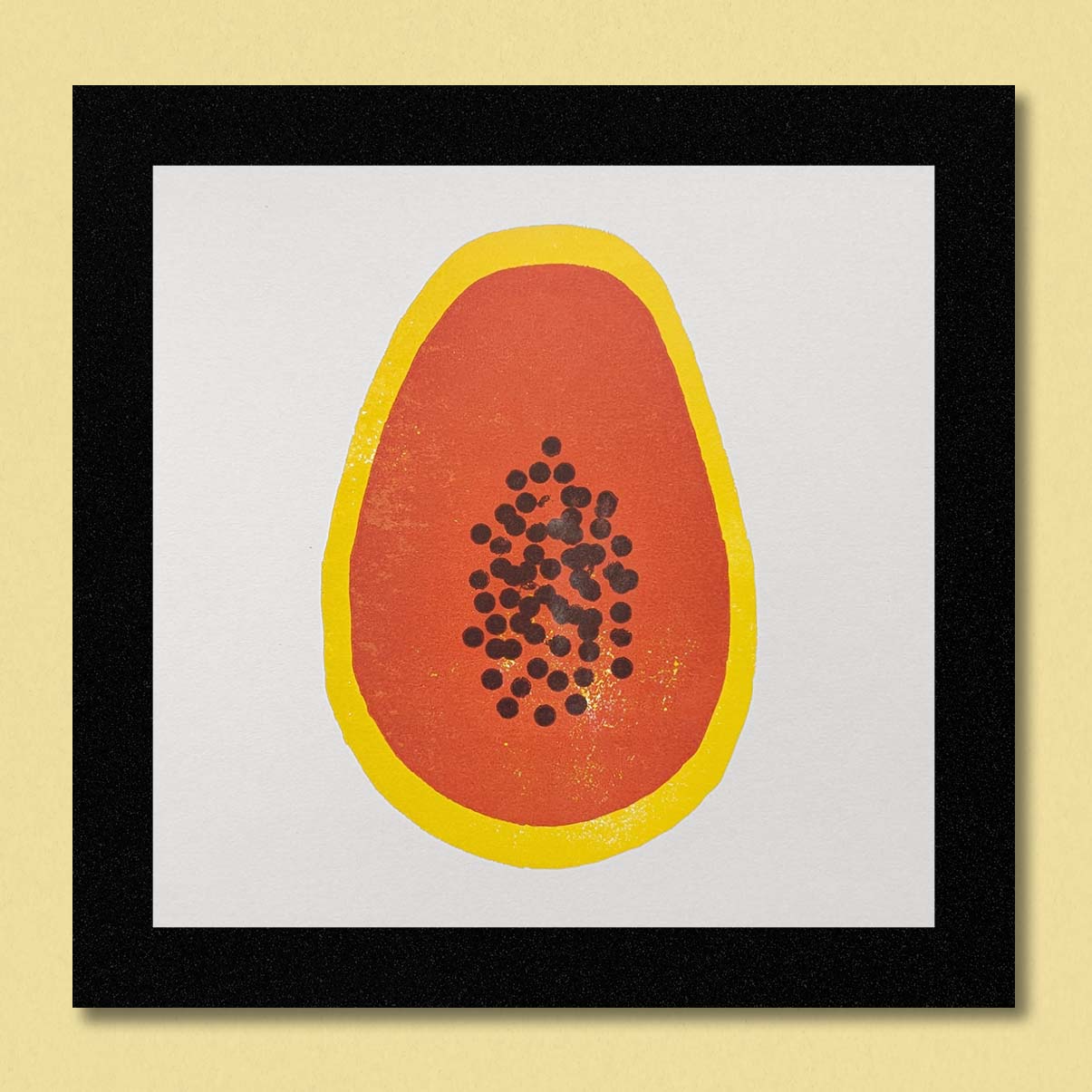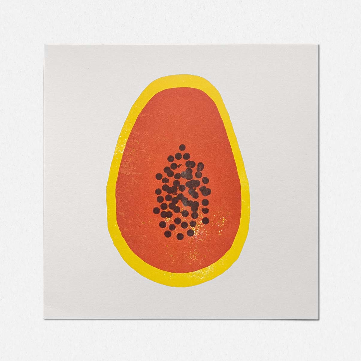 Letterpressed print of the all-tropical papaya, featuring art by Chiara Armellini, for ‘Fruit Salad’