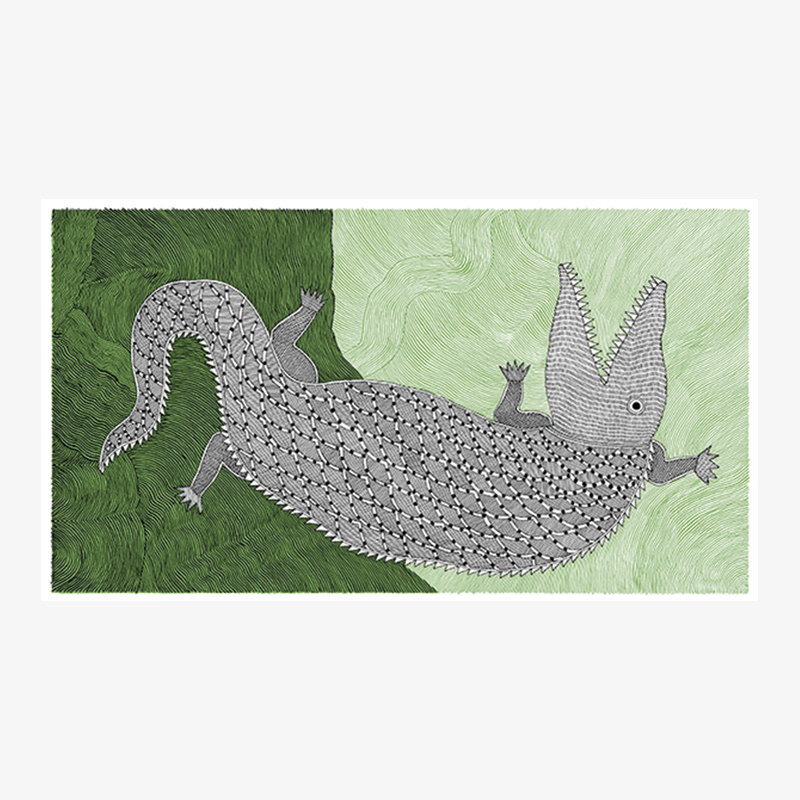 Creatures of the water as you have never seen them before, rendered in the brilliant Mithila style of folk painting from eastern India.