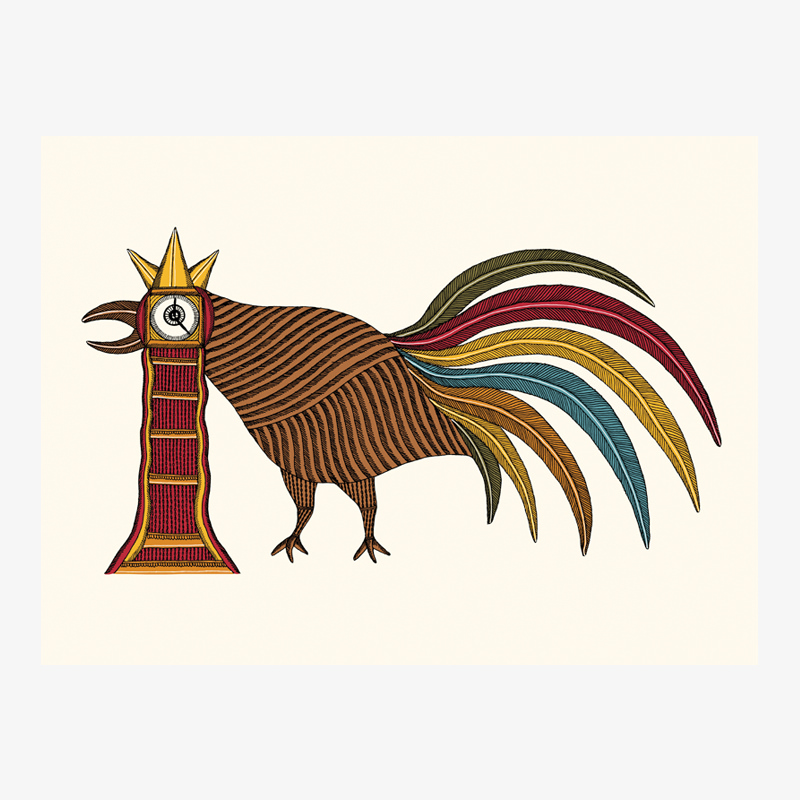 Bhajju Shyam: I have combined the rooster, the symbol of time in Gond art and Big Ben, the symbol of time in London.